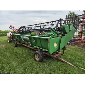 20' JD 920 grain table w/ head cart, hydraulic fore & aft, good poly, sprocket hookups