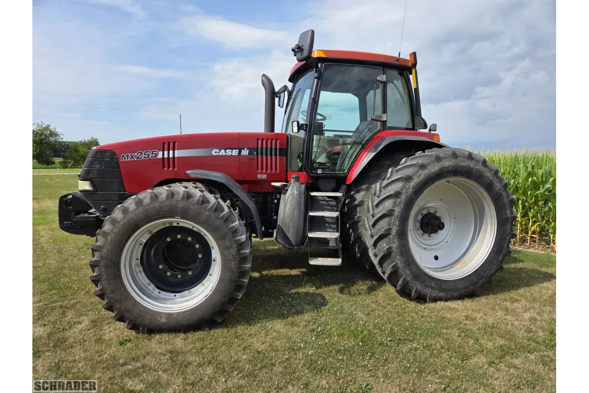 2003 CIH MX255 MFWD tractor, powershift w/ left hand reverser, 3 remotes, small 1000 pto, 3pt, rear 3pt controls, hammer strap, red leather seat, buddy seat, tilt wheel, mirrors, (4) suitcase weights, 480/80R46 rears & duals, 380/85R34 steers & duals, 4937 hrs