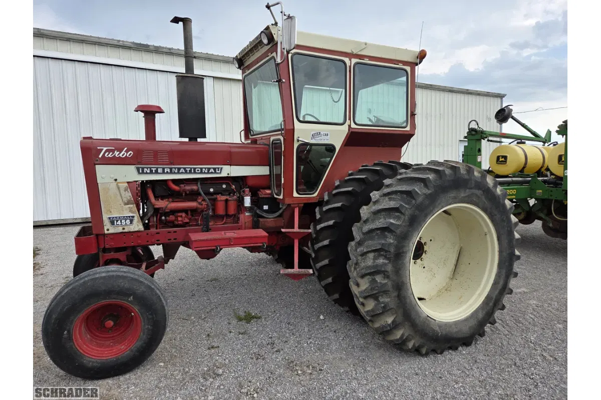 1970 IH 1456 tractor, Year-A-Round cab, Turbo, 2 remotes, 540/1000 pto, 3pt, (4) sets of wheel weights, tool box, 18.4R38 rears & hub duals, 10.00-16 steers, 7992 hrs