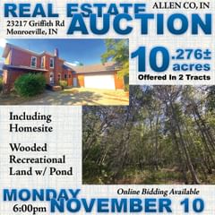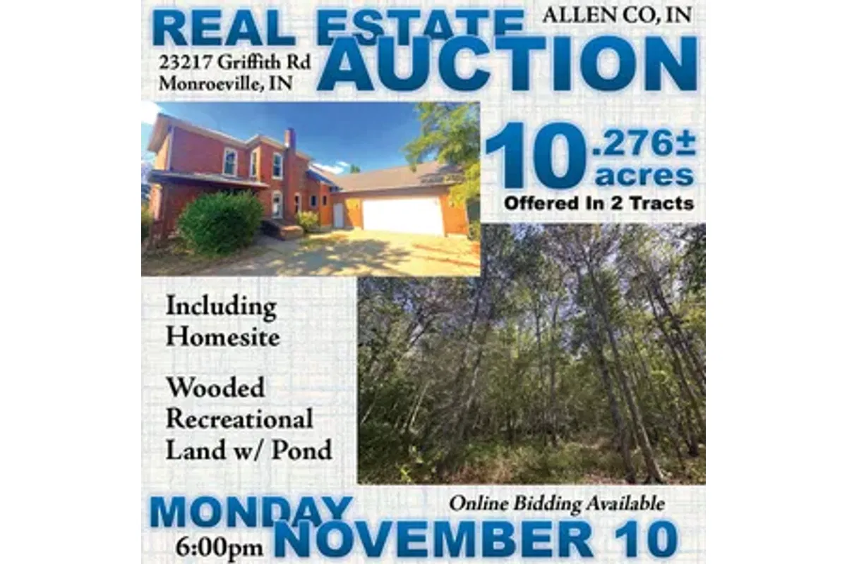 REAL ESTATE AUCTION - 10.276+/- ACRES OFFERED IN 2 TRACTS IN ALLEN COUNTY, INDIANA