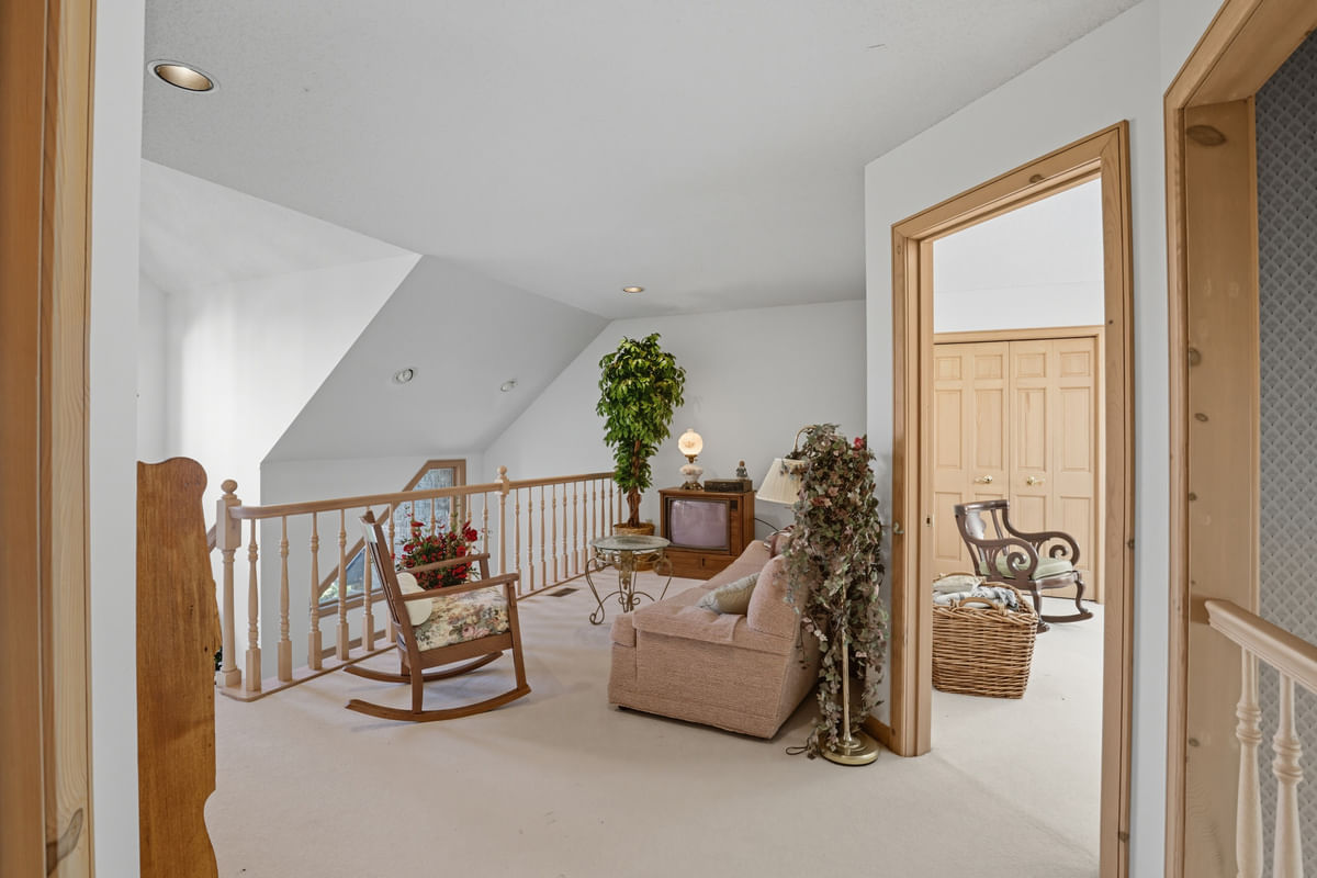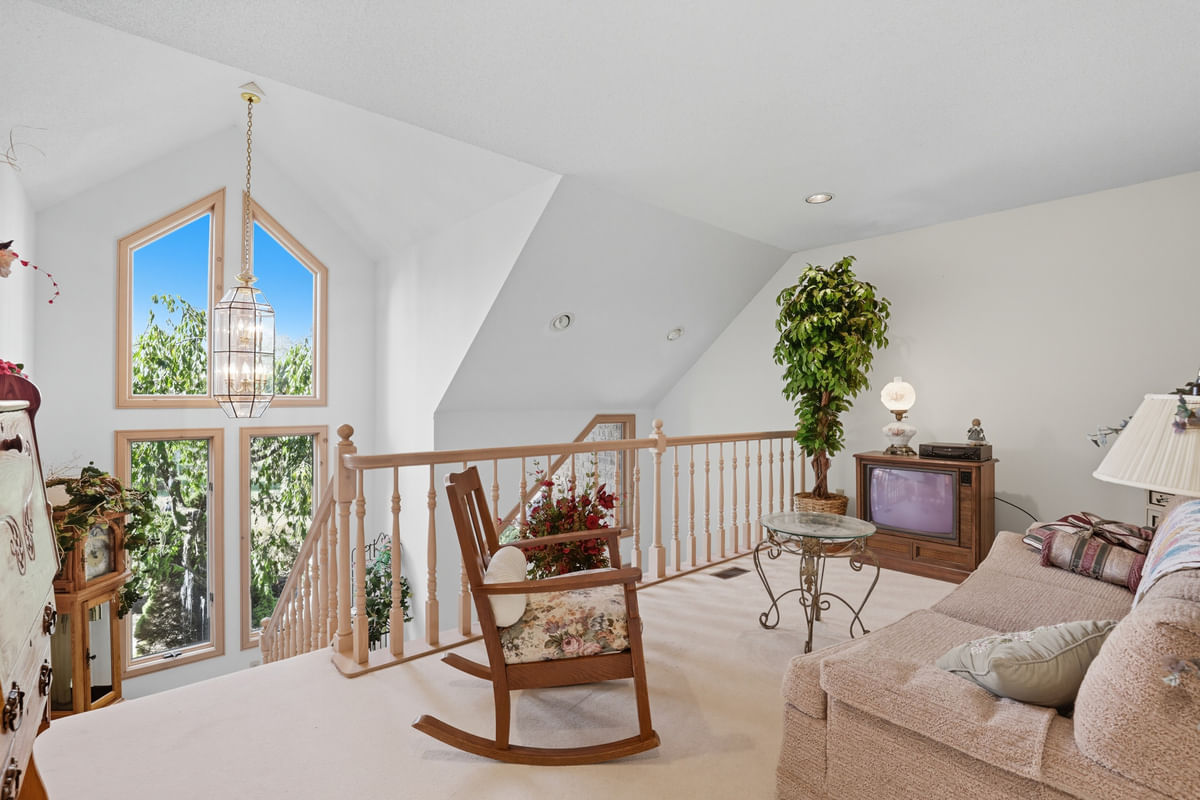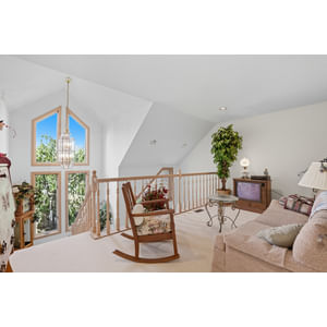 Upper Level: An extra-wide staircase leads to a bright open Loft (16 x 8) overlooking the kitchen - a great reading nook or flex space. Also includes a full bath with tub/shower combo and single vanity.