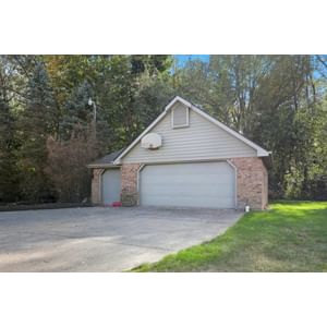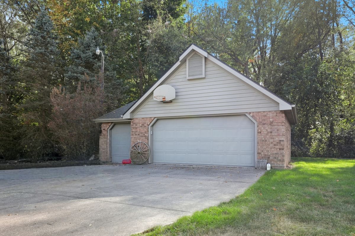 Detached 3-Car Garage: Fully insulated and chipboard-finished with built-in cabinetry and attic storage above.