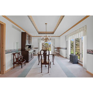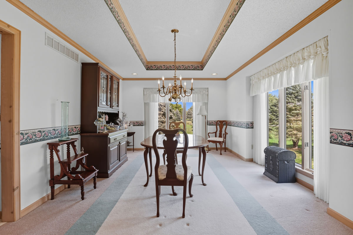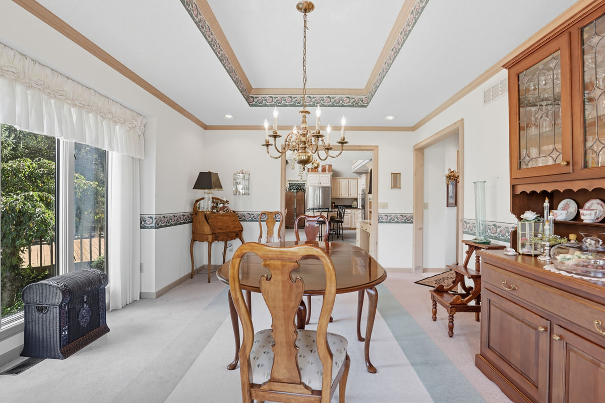 Formal Dining Room - 12 x 18: Ideal for hosting family dinners or holidays, this elegant room features a trayed ceiling, formal chandelier with recessed lighting, and Anderson crank-out windows overlooking the landscaped back and side yards. Enjoy an abundance of natural daylight throughout.